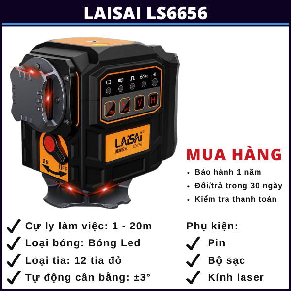 Laisai LS6656 là dòng máy cân bằng laser 12 tia đỏ, được sản xuất trên dây chuyền hiện đại theo tiêu chuẩn châu Âu của hãng Laisai nổi tiếng. Đây là dòng máy thiết kế với chất lượng vượt trội so với các dòng máy cùng phân khúc giúp người dùng tiết kiệm chi phí mà vẫn mang lại hiệu quả cao nhất trong công việc….