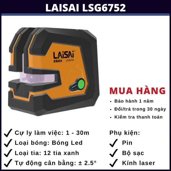 Laisai LSG6752 là một trong những dòng máy cân bằng laser 12 tia xanh tốt nhất hiện nay. Máy được sản xuất bởi thương hiệu Laisai nổi tiếng, với chất lượng cao và giá thành hợp lý. Máy có đầy đủ các tính năng cần thiết để đáp ứng nhu cầu sử dụng của các khách hàng trong nhiều lĩnh vực khác nhau